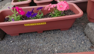 お花はお客様の育てておられるプランターと並べて頂き、仲間が増えたことで
