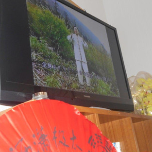 まずは、気功体操です。気功を習っている職員が、DVDを流しながらの気功を