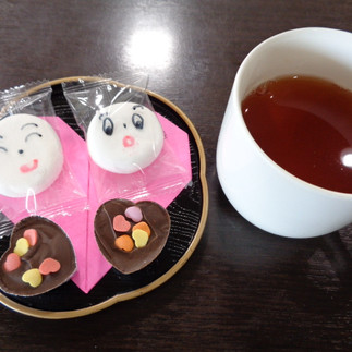 手作りハート型の可愛いチョコとマシュマロを召し上がって頂きました!